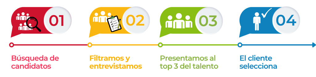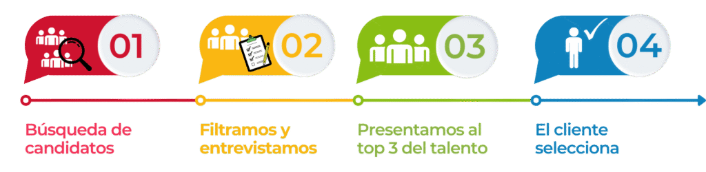 Nos encargamos de todo el proceso, desde la atracción y filtrado de candidatos hasta la evaluación y presentación final. Garantizando perfiles adecuados, tiempos de respuesta ágiles y resultados de calidad.